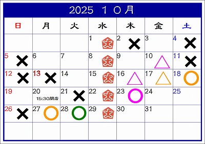 ※空欄は受付中。前日まで、お電話にてご予約ください。