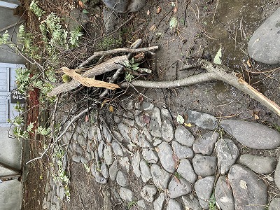 昨晩からの大荒れにより、お庭の木々が折れまくった。