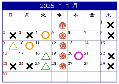 ※◯△の印がある日は、上記人数を確認の上、当日飛び込みもOK!
