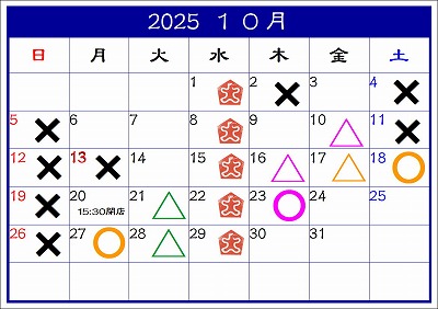 ※空欄は受付中。前日まで、お電話にてご予約ください。